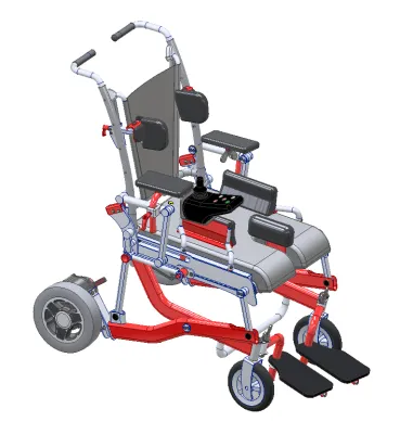 Urządzenie jest składane, co pozwala na wygodny transport. E- LEO oferuje atrakcyjne wzornictwo, szczególnie dla najmłodszych pacjentów oraz daje możliwość personalizacji w zakresie koloru ramy urządzenia.