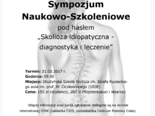 Już niedługo, bo 31 marca, w Olsztyńskiej Szkole Wyższej, odbędzie się Sympozjum naukowo-szkoleniowe "Skolioza idiopatyczna - diagnostyka i…